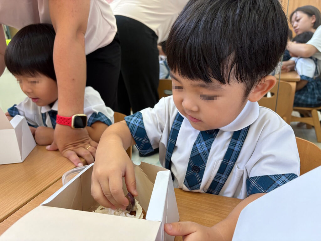 楽しく学びながら、自分だけのオリジナルケーキを完成させました。