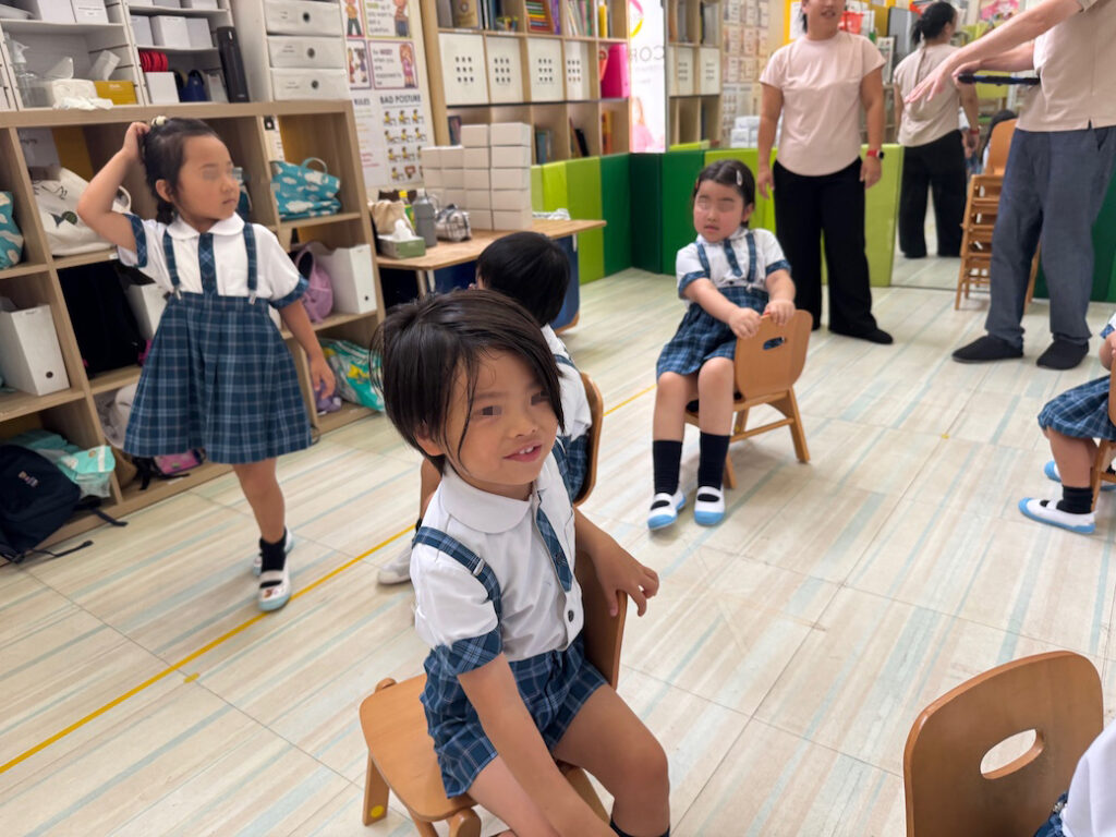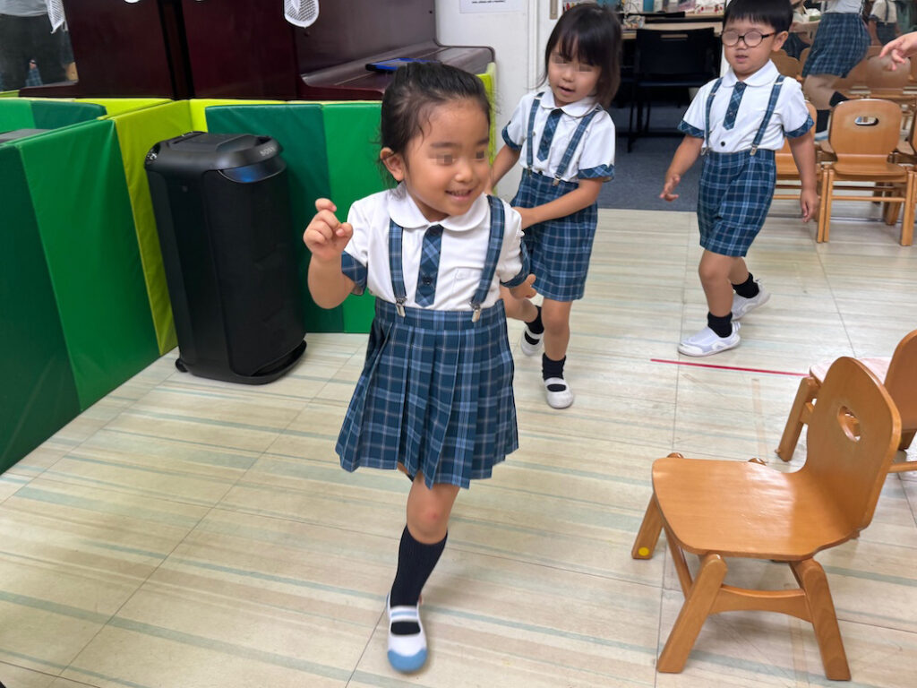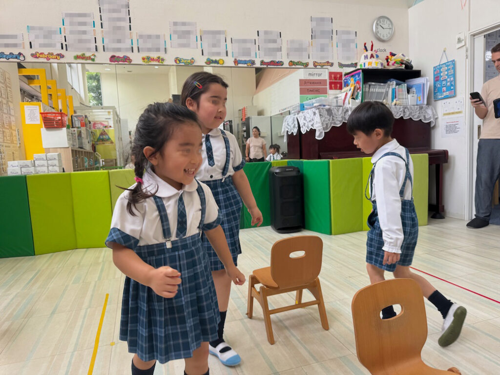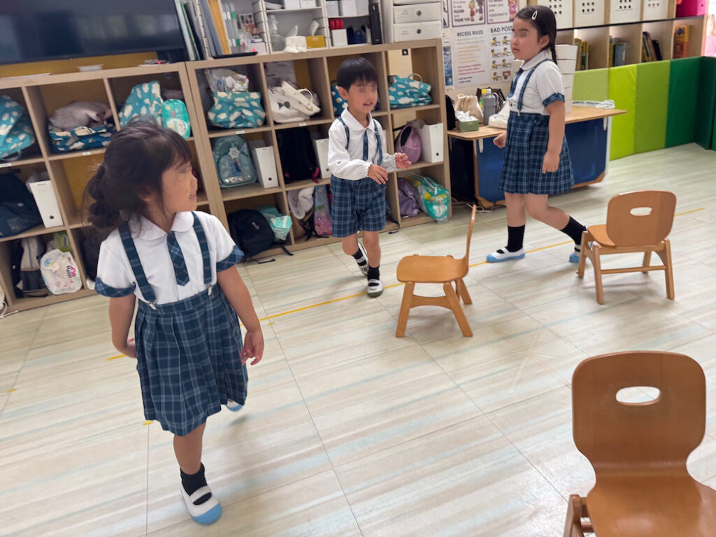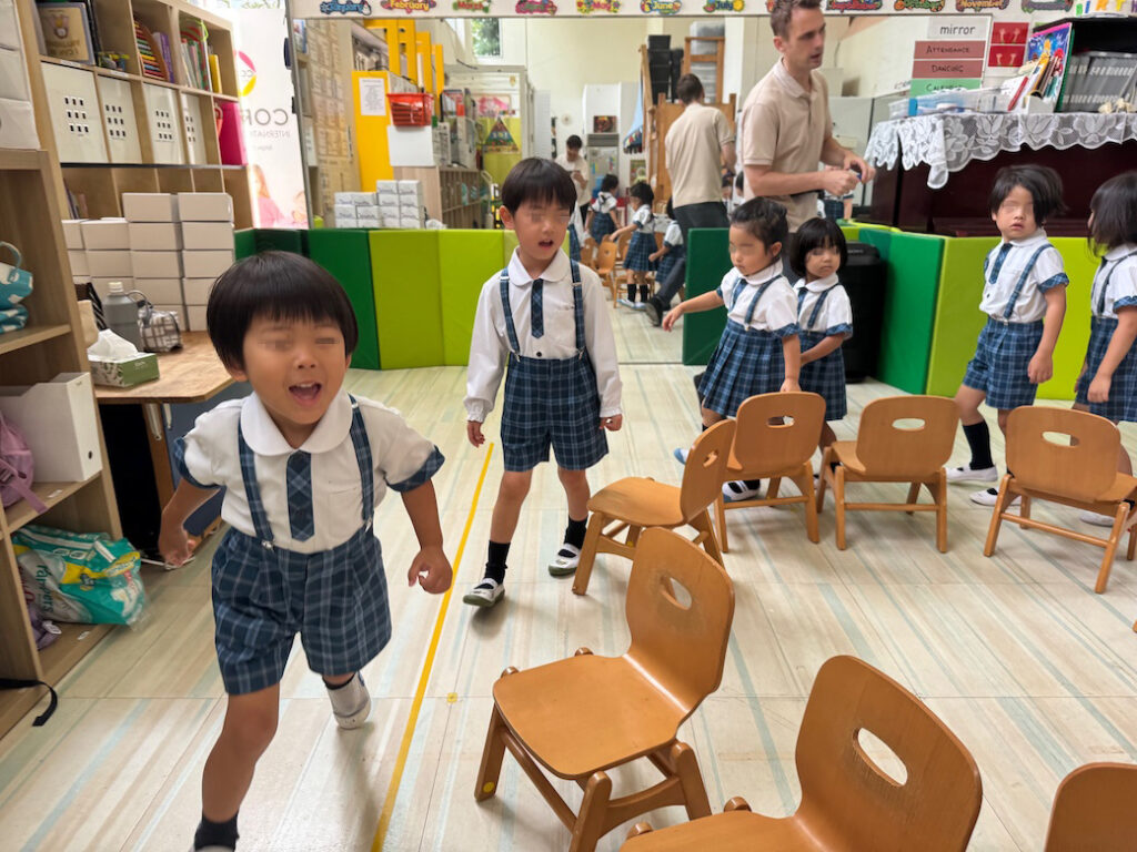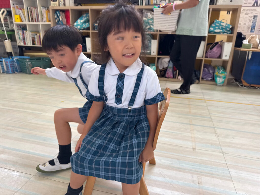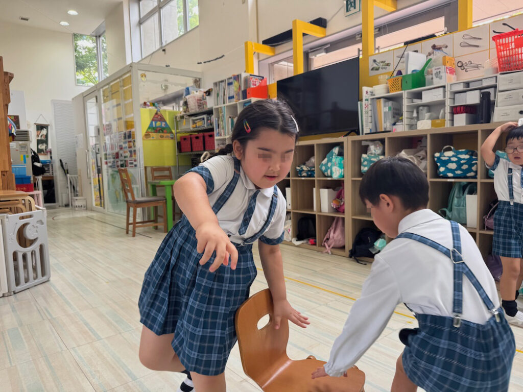 そして、音楽が止まった瞬間、椅子をめぐって座る子どもたち!