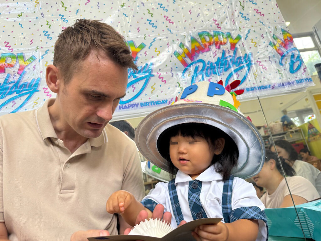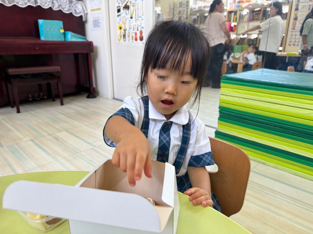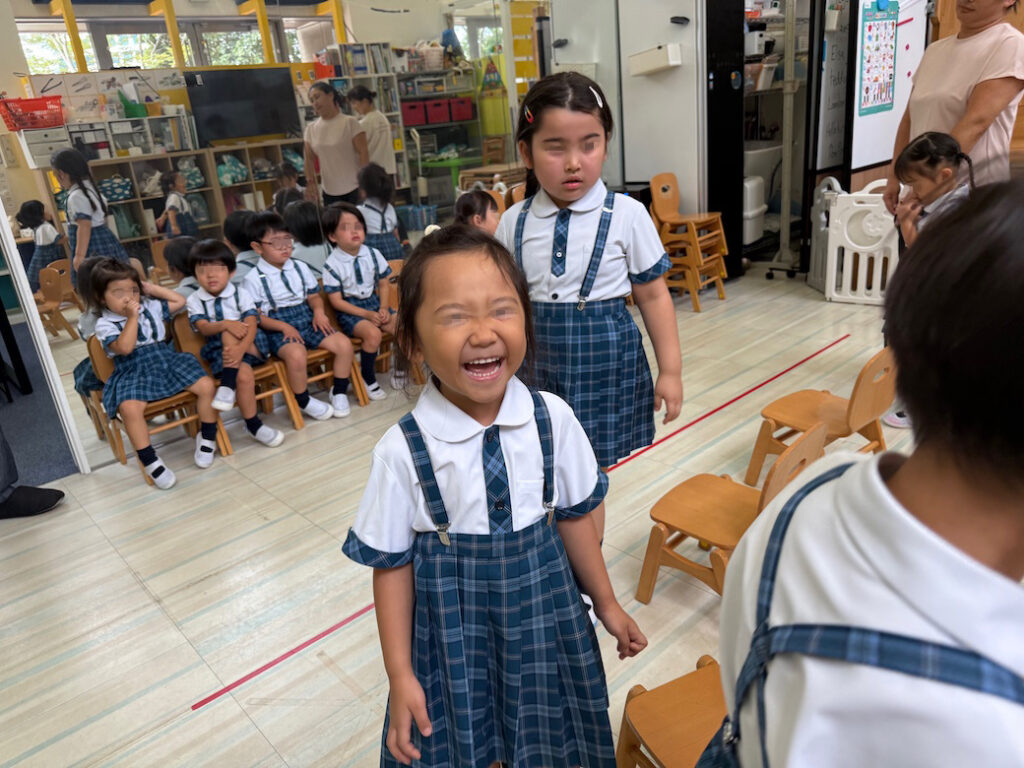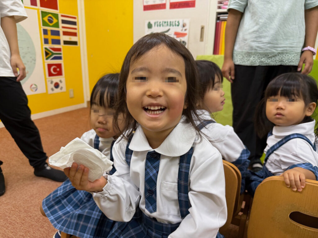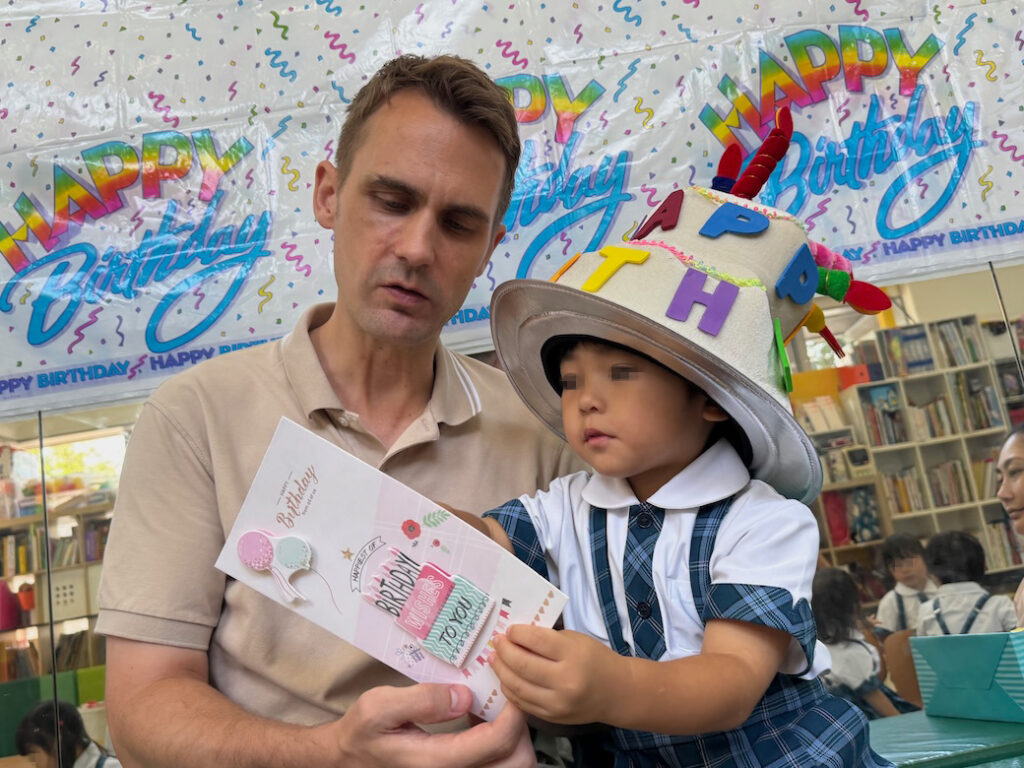 いよいよ最後は、Mike先生が、みんなからの手作りバースデーカードを読み上げて、8月・9月生まれのお友だちを全員でお祝いしました。