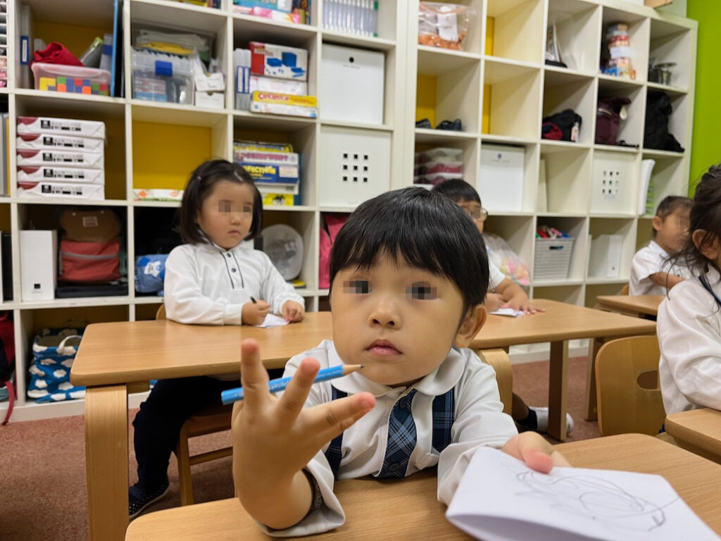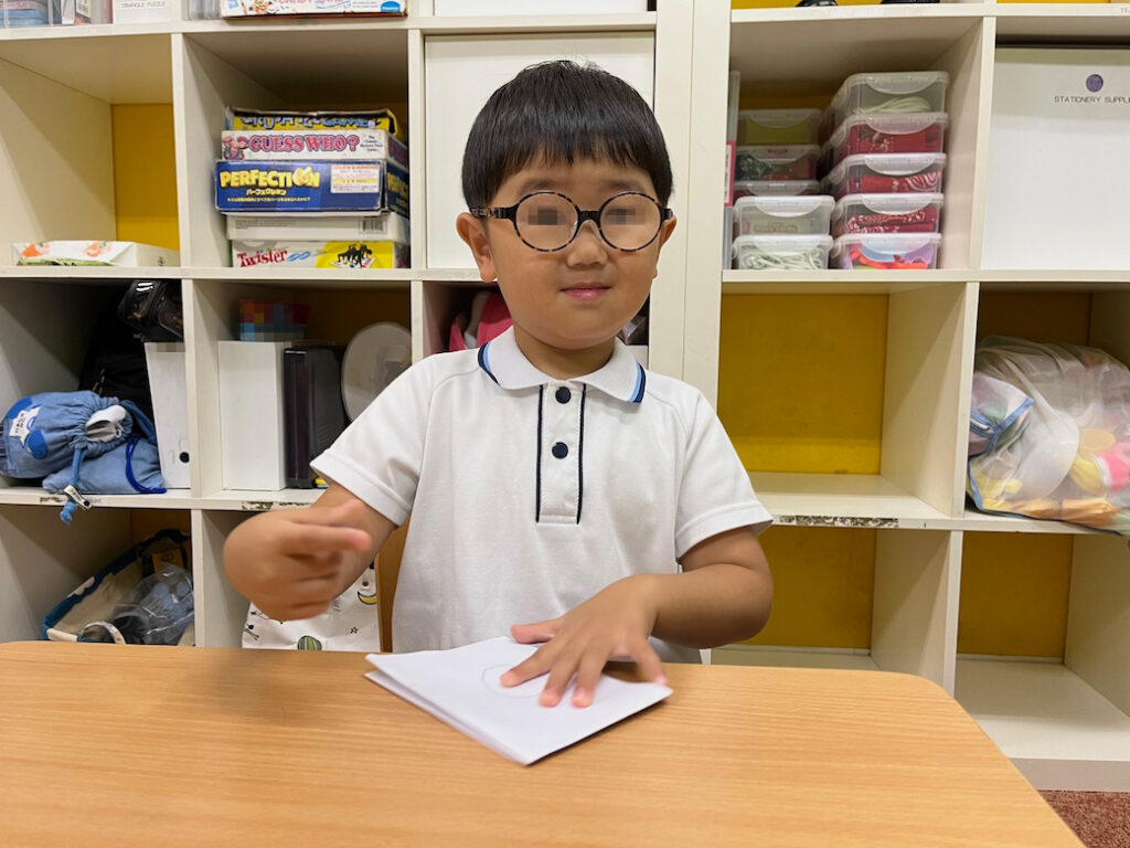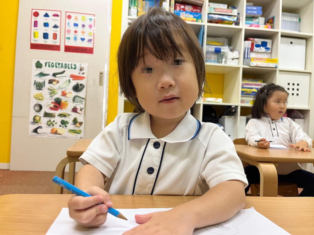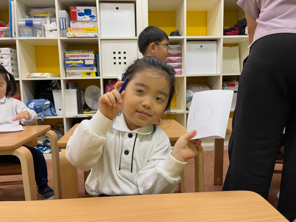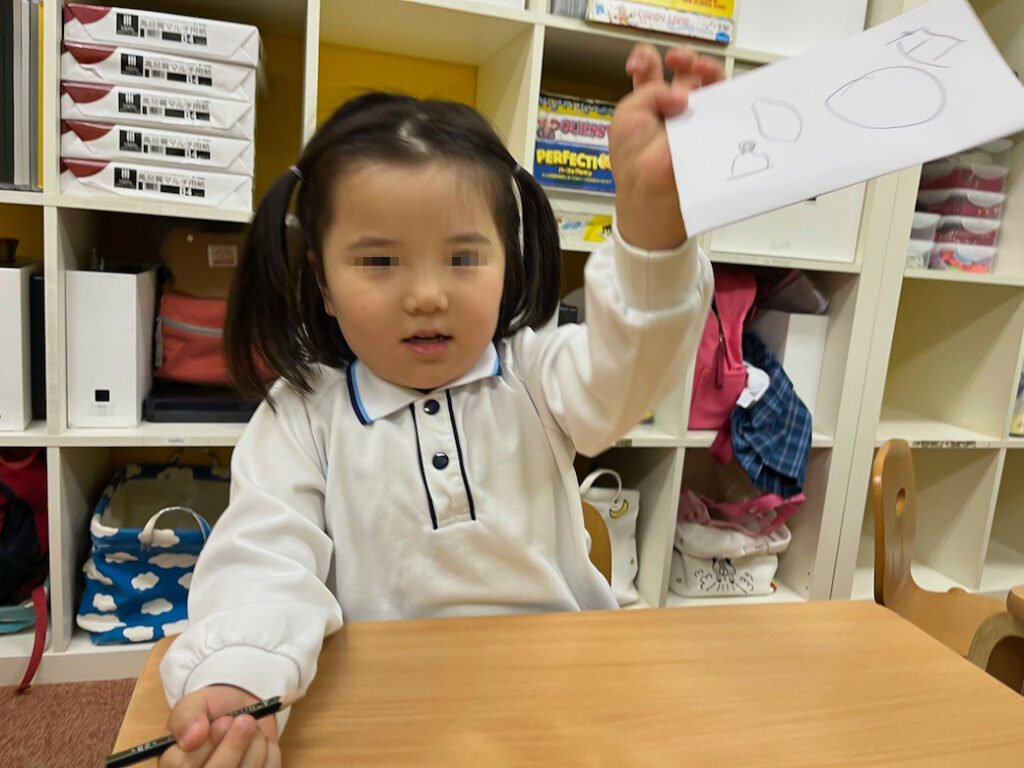 今回のテーマは、外国人講師Jewel先生が提示した形をもとに絵を描き、それが何かを皆の前で発表するというものです♪