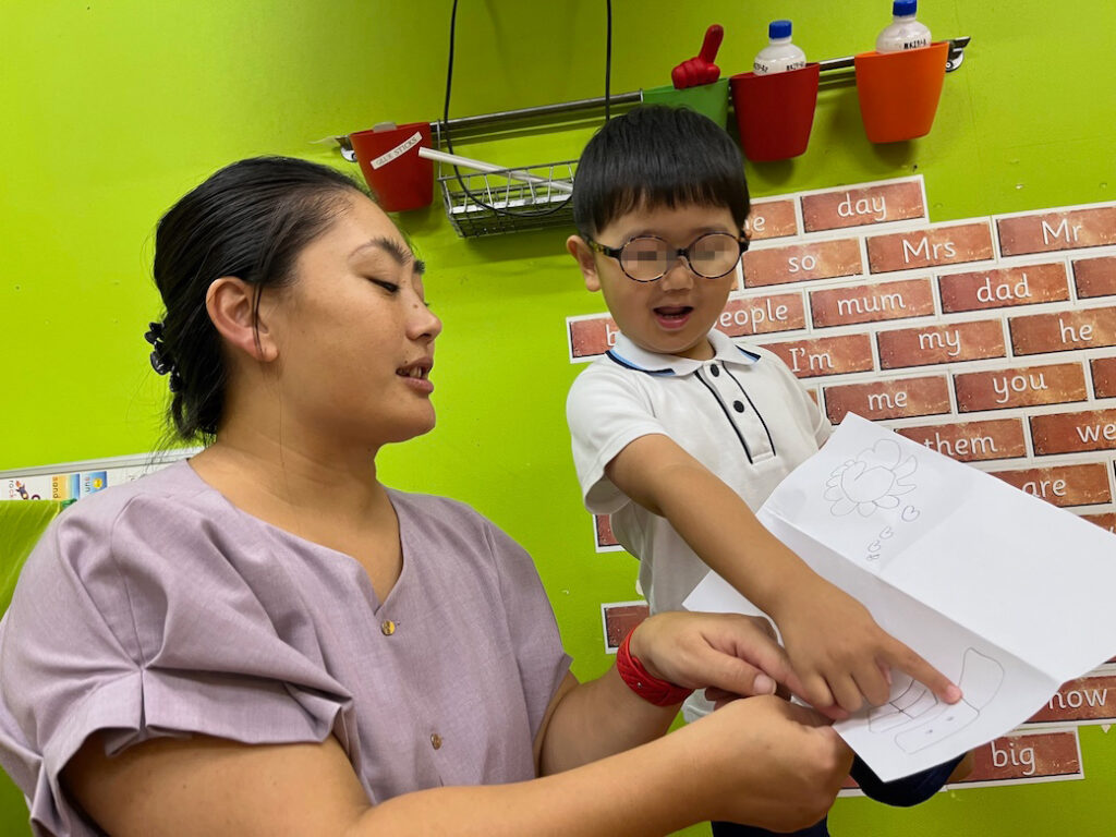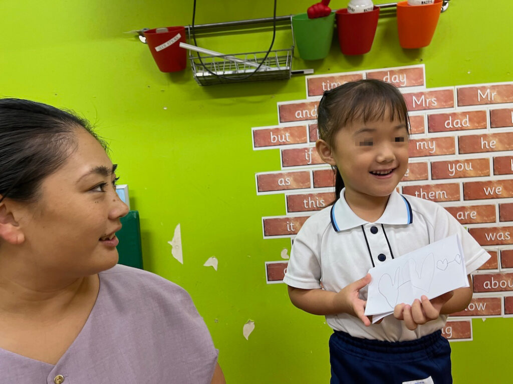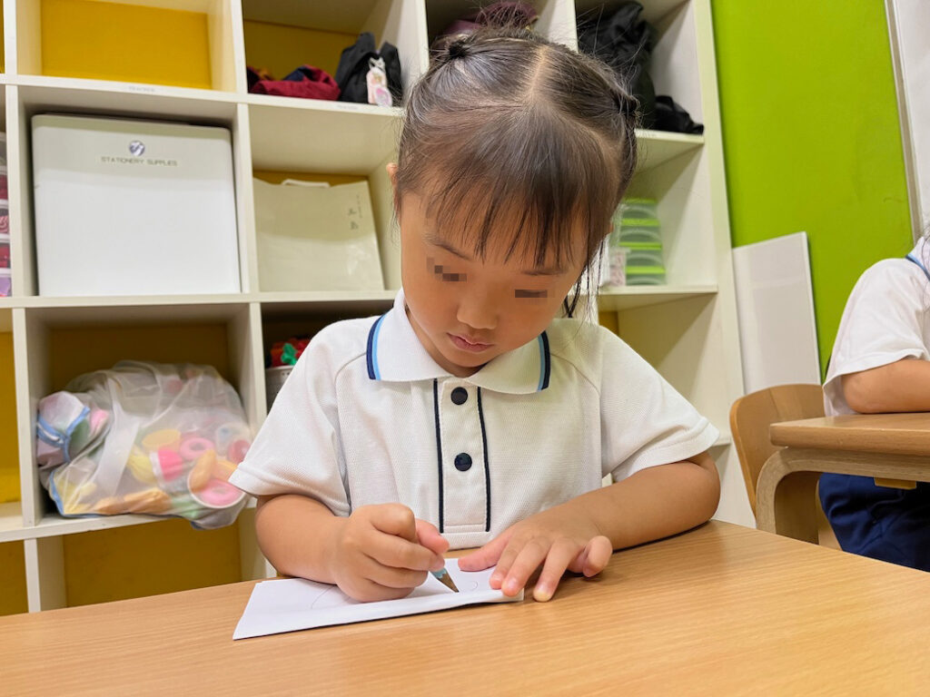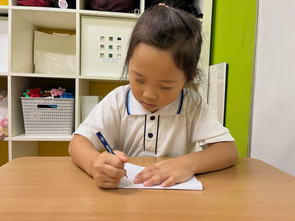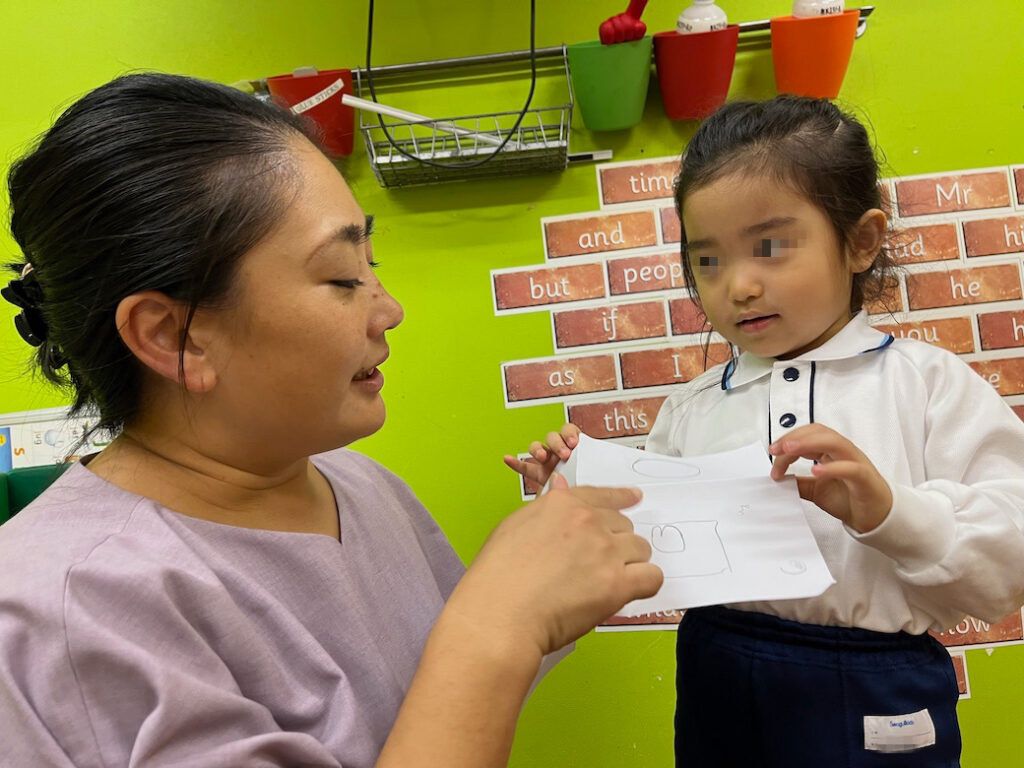 今回のテーマは、外国人講師Jewel先生が提示した形をもとに絵を描き、それが何かを皆の前で発表するというものです♪