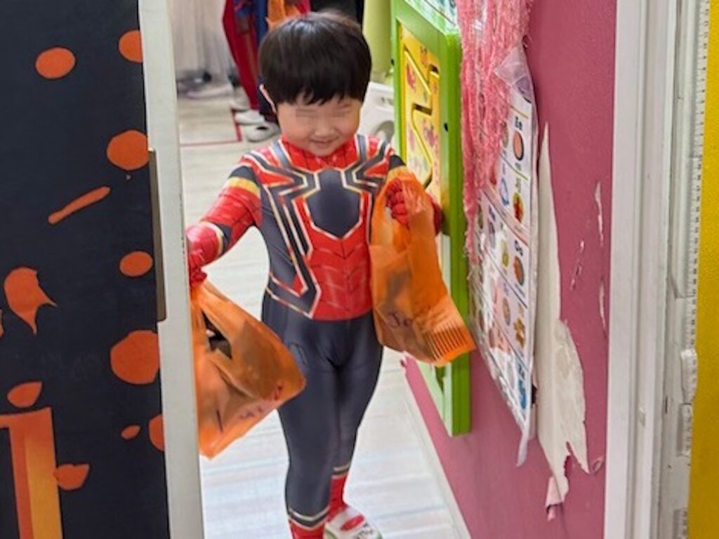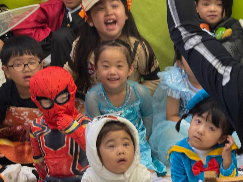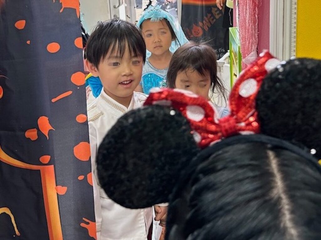 今年も、思い思いの仮装を身にまとった子どもたちの発表に、職員一同感動の連続でした。スーパーヒーローやプリンセス、かわいい動物さんなど、個性豊かな衣装に加え、子どもたちはジェスチャーや仕草、言葉の工夫まで考えて発表していました。