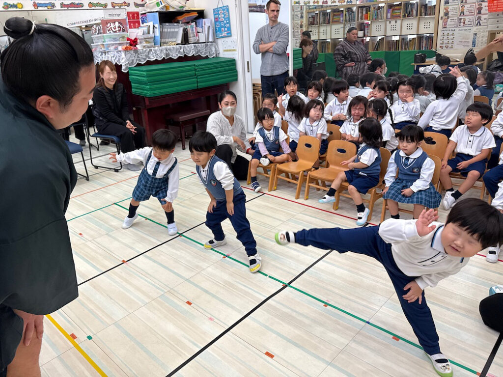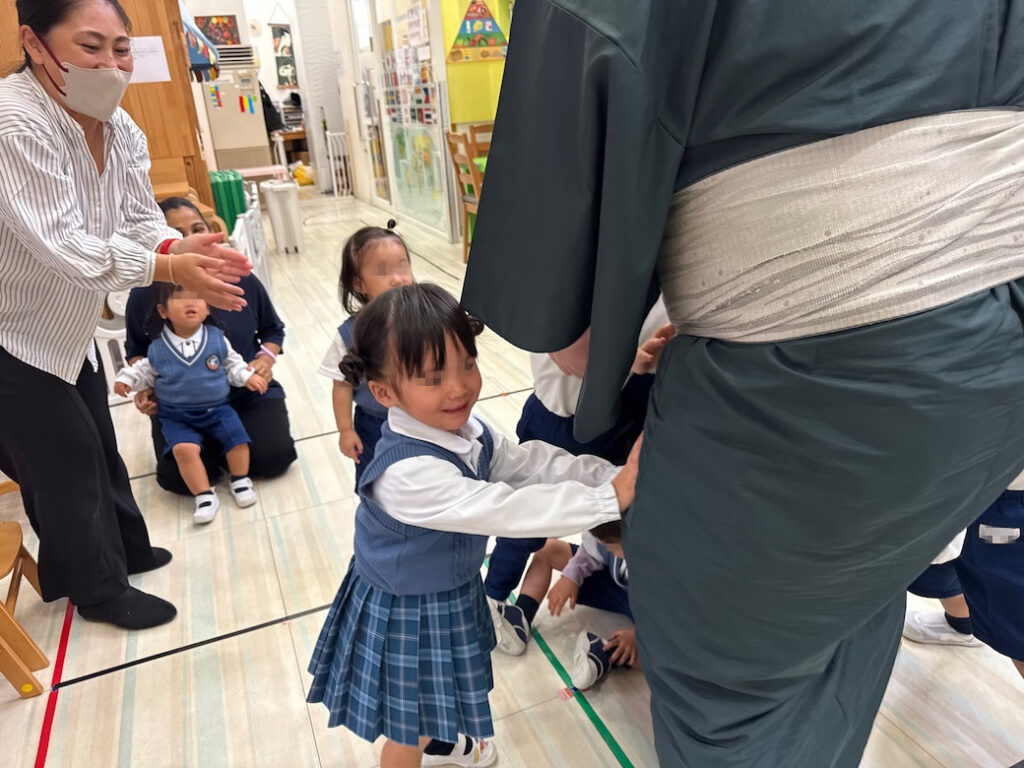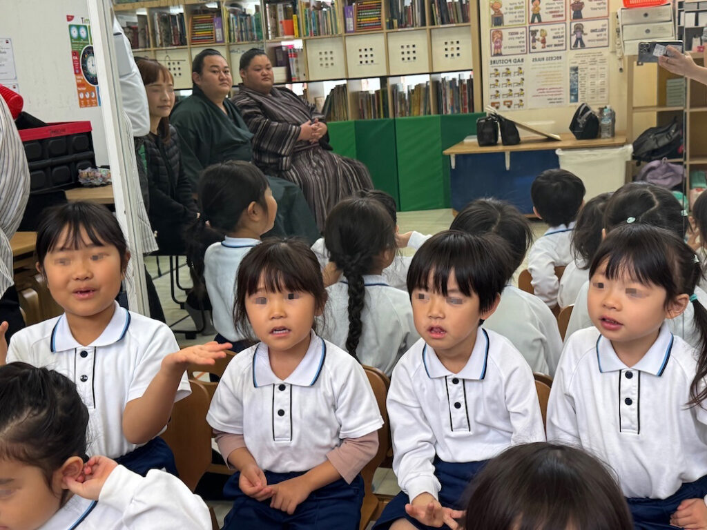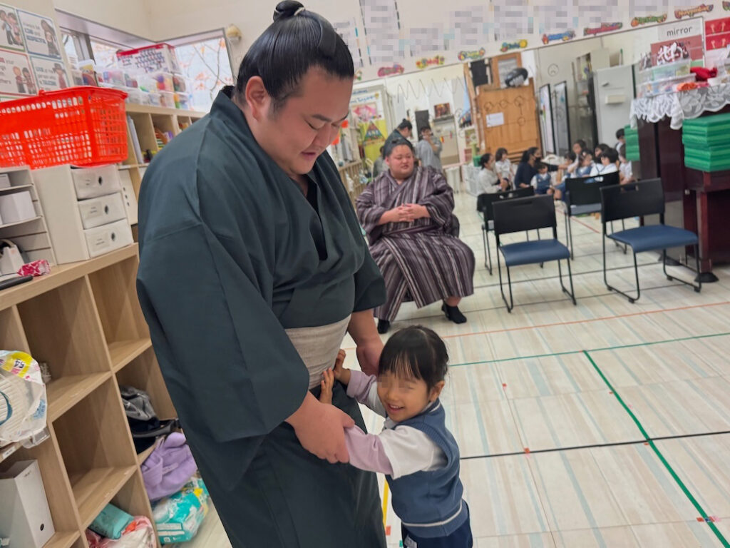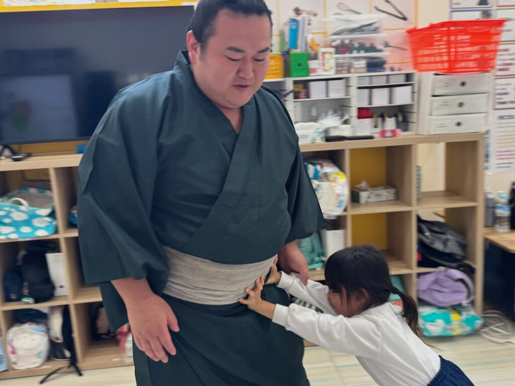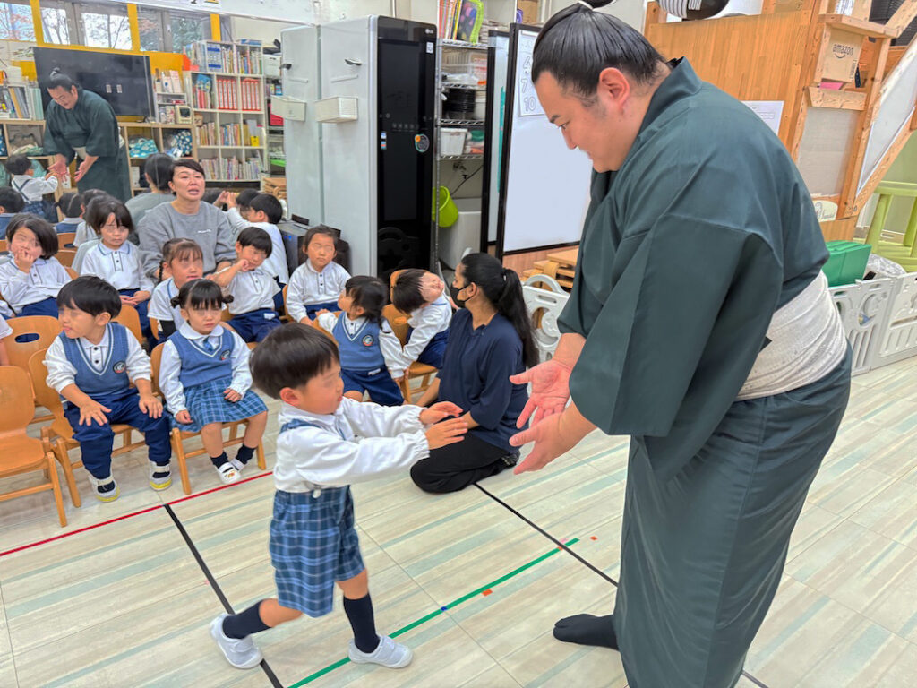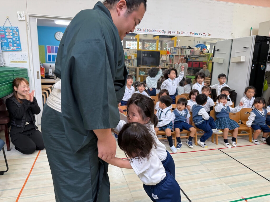 優しくて力強いお相撲さんの登場に、子どもたちは最初から目を輝かせ、大興奮の様子でした。
