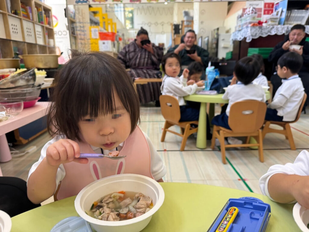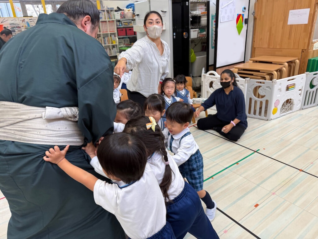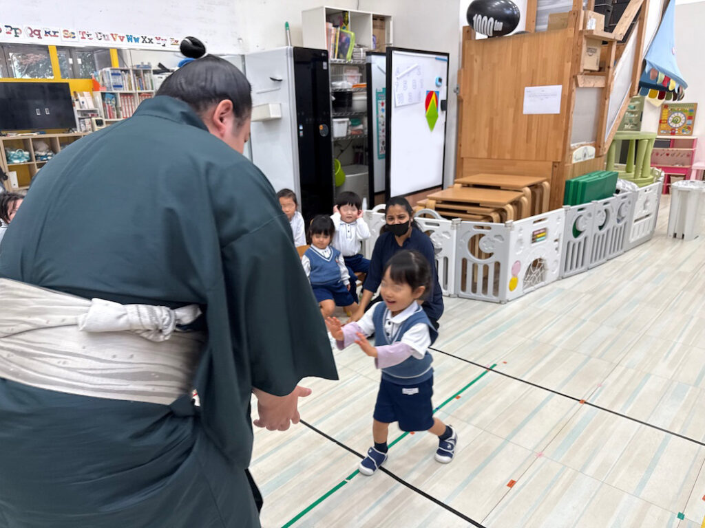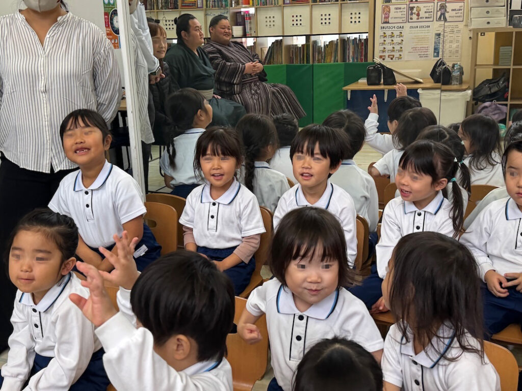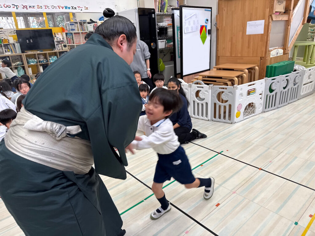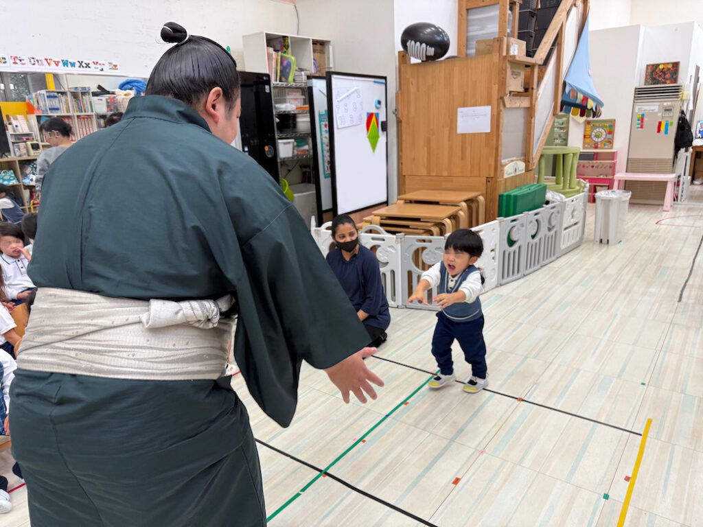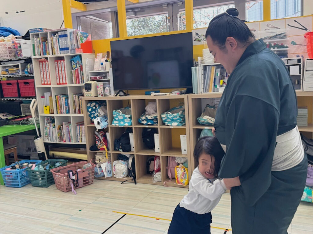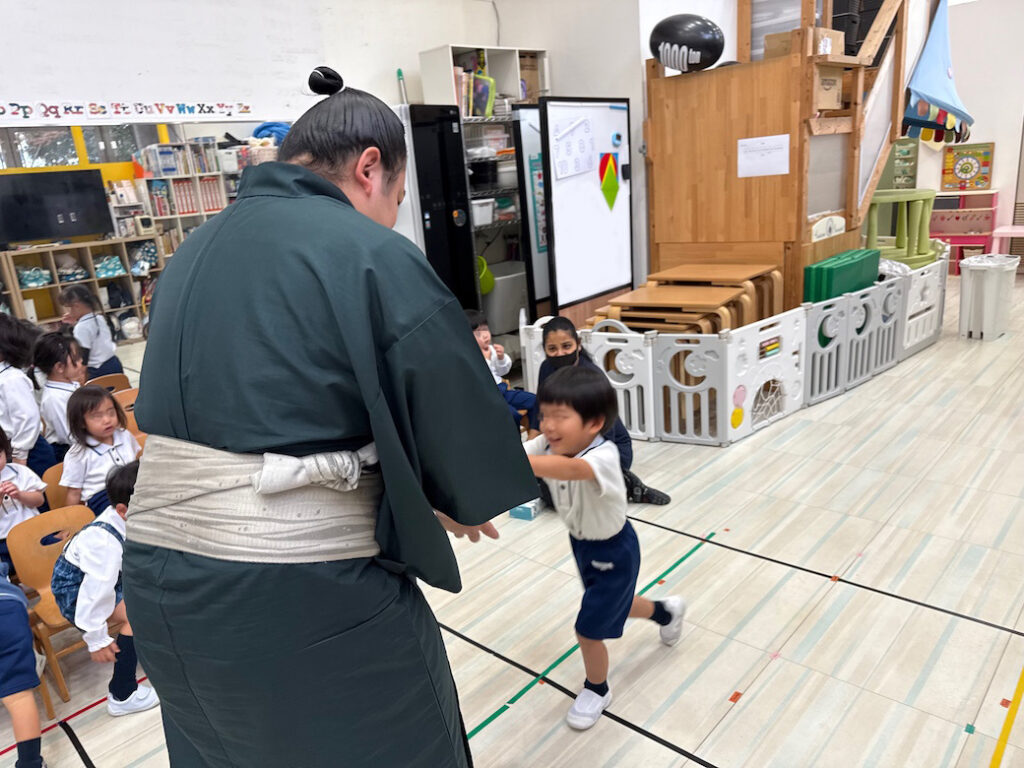 優しくて力強いお相撲さんの登場に、子どもたちは最初から目を輝かせ、大興奮の様子でした。