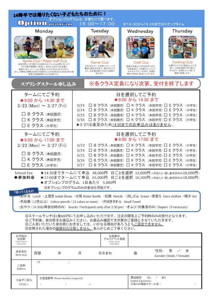 3月23日(月)~3月27日(金)の期間中、恒例のコーナーズスプリングスクールを開催いたします!