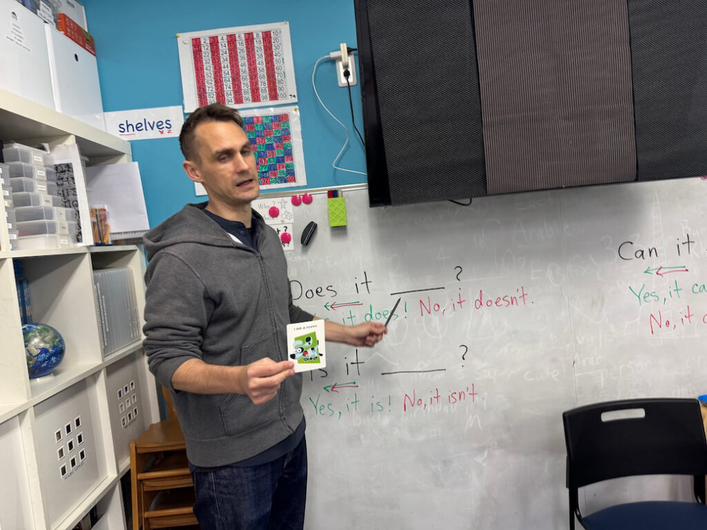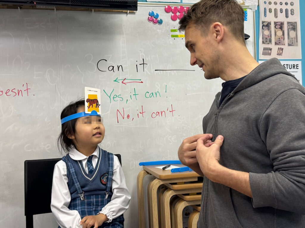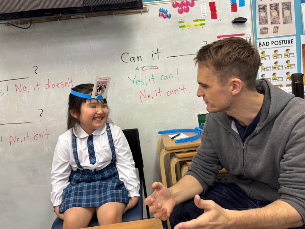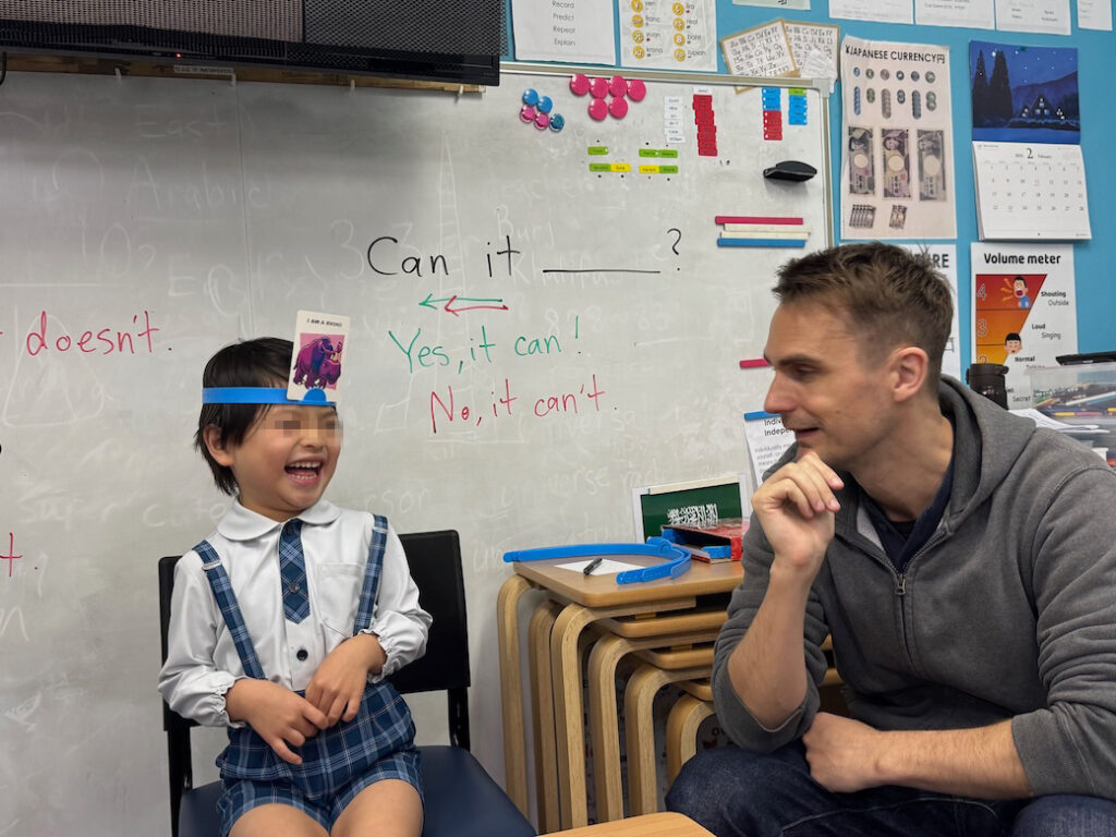 子どもたちは、Yes か Noで応答可能な疑問文を構築しながら、情報を整理・分類し、仮説検証を繰り返していきます。このプロセスは、単なる語彙の想起にとどまらず、英語での論理的思考力を促進するものです。
